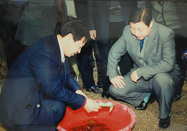 (1999年3月15日,习近平同志第二次到圣农调研,当时圣农除养鸡外,还养有部分甲鱼。)