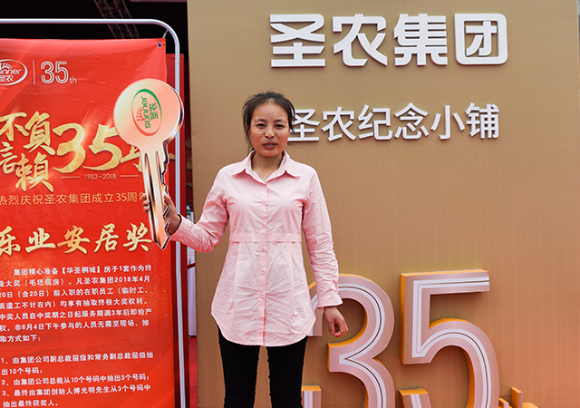 6月4日下午4点,随着圣农集团创始人傅光明宣布圣农食品6厂员工陈年玉获得35周年庆典终极大奖、拥有华圣桐城1套商品房时,总部广场顿时欢声雷动、群情激昂。