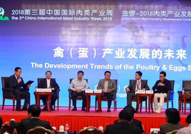世界肉类组织主席、法国猪业联盟主席胡儒,世界肉类组织副主席、中国肉类协会会长李水龙等领导参加了大会。圣农发展常务副总裁陈剑华在2018肉类产业发展大会上,围绕禽蛋产业发展趋势,上台与行业代表进行了深入的对话与交流。