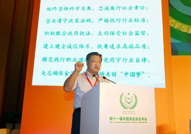 16日,年会围绕食品安全和农产品质量生产保障体系、监控管理体系、标准和法规管理体系、科学技术支撑和成果转化体系、教育培训体系和全社会监督体系等内容展开讨论,圣农发展股份有限公司副总裁、董事会秘书陈剑华在会上就《圣农产业链及食品安全控制体系》向大会作了介绍。