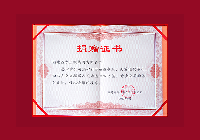 2021年5月19日,圣农集团与福建省退役军人事务厅在总部举行就业合作协议签约仪式。集团创始人傅光明按照“优先招聘、待遇从优、专项培养”原则,近年来,积极吸纳300多名退役军人就业,其中30多名退役军人员工成长为基层管理人员,2名退役军人员工成长为高级管理人员。
